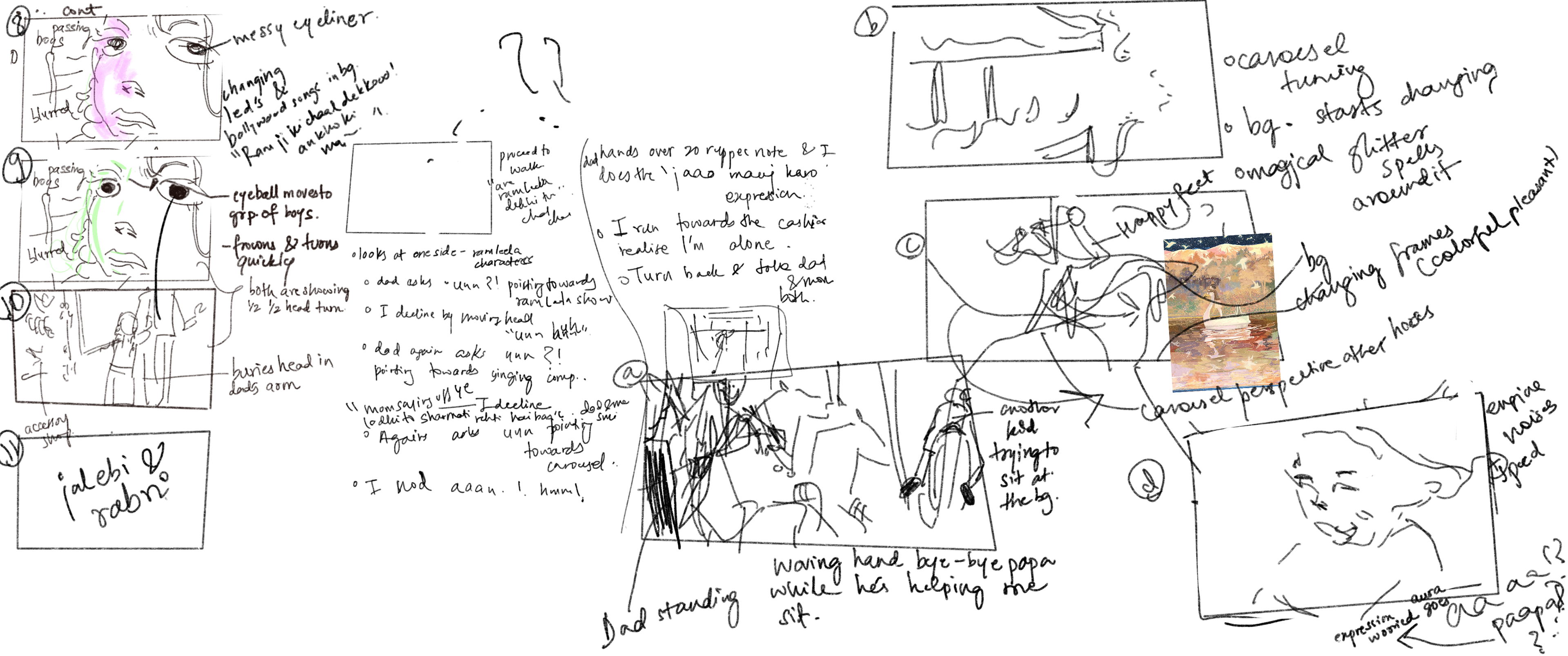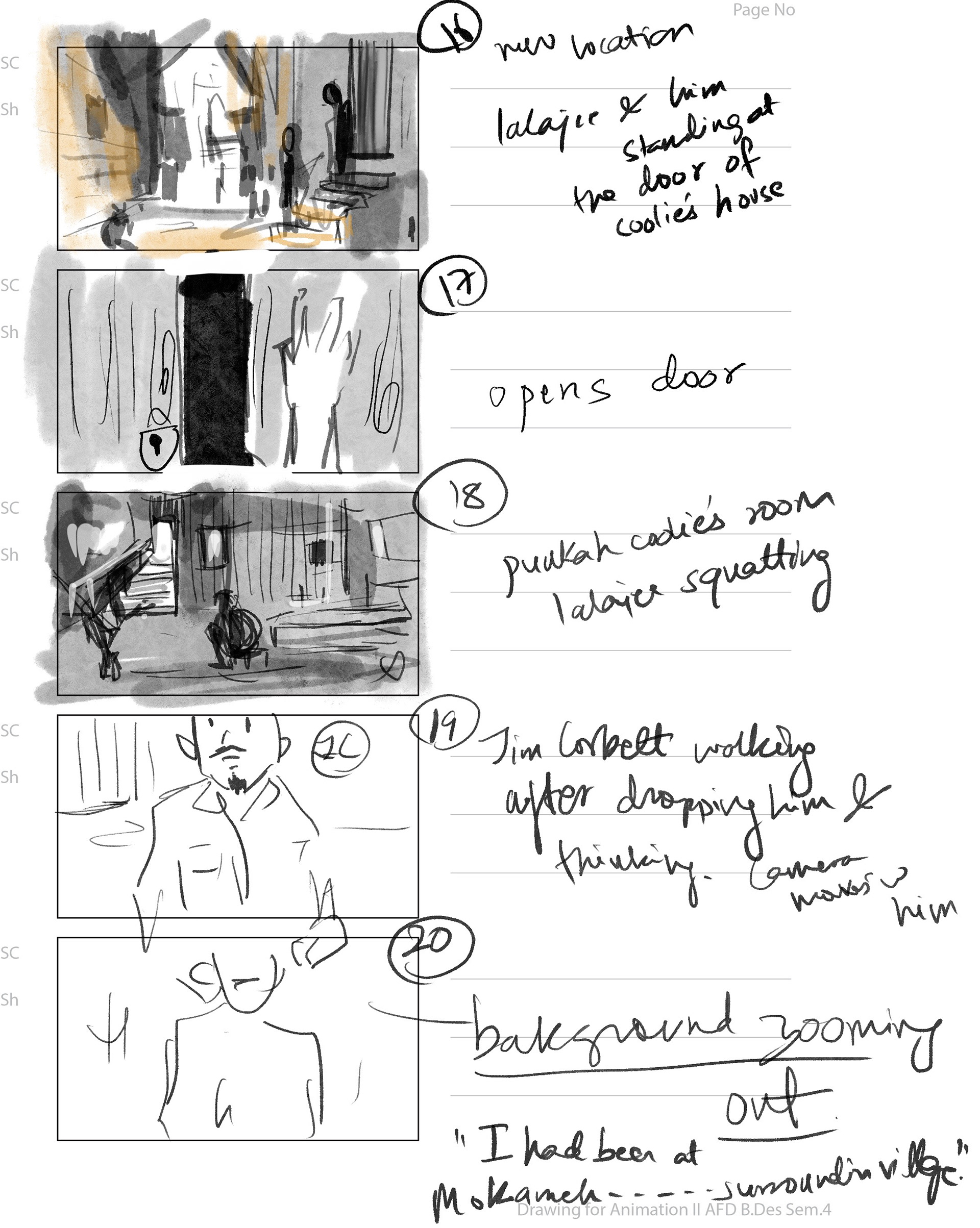 Layouts made for Jim Corbett's short story, Lalajee. Made with an intent to frame and compose the characters and actions to the best extent possible.