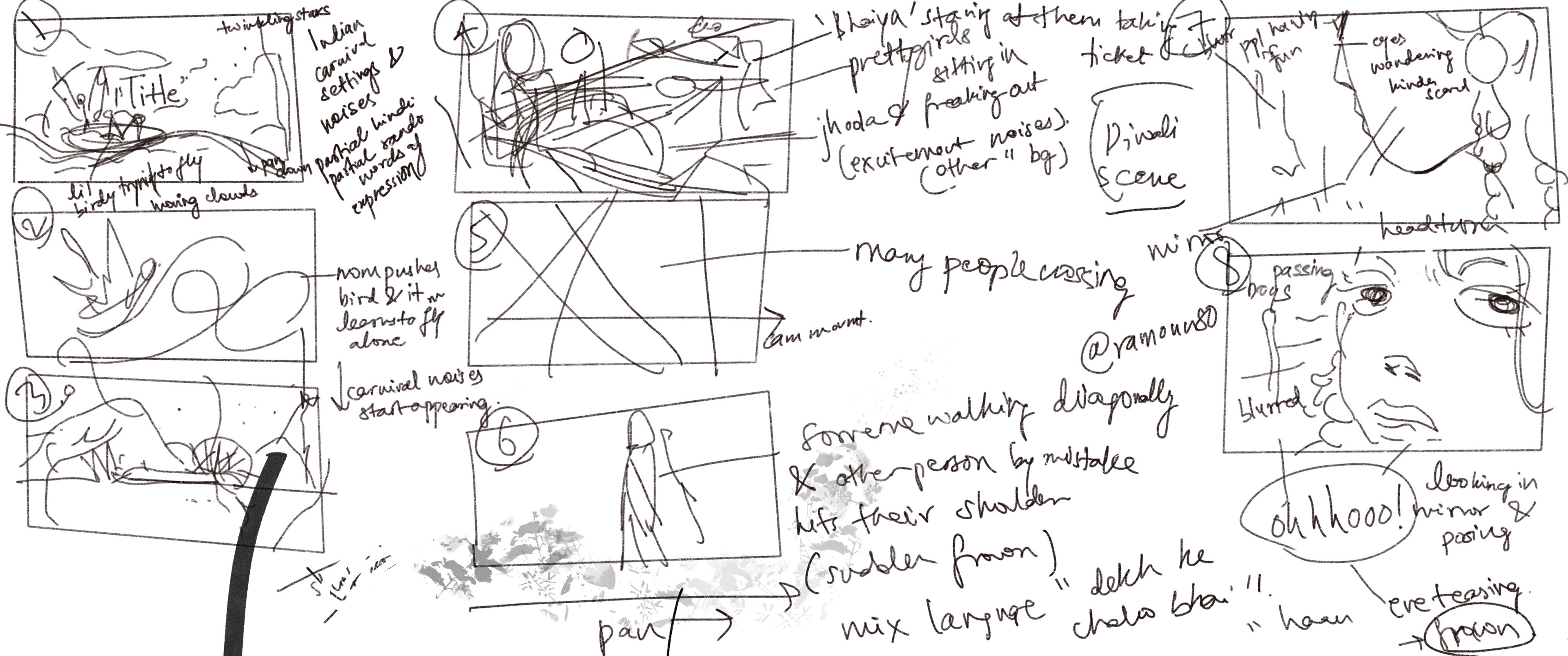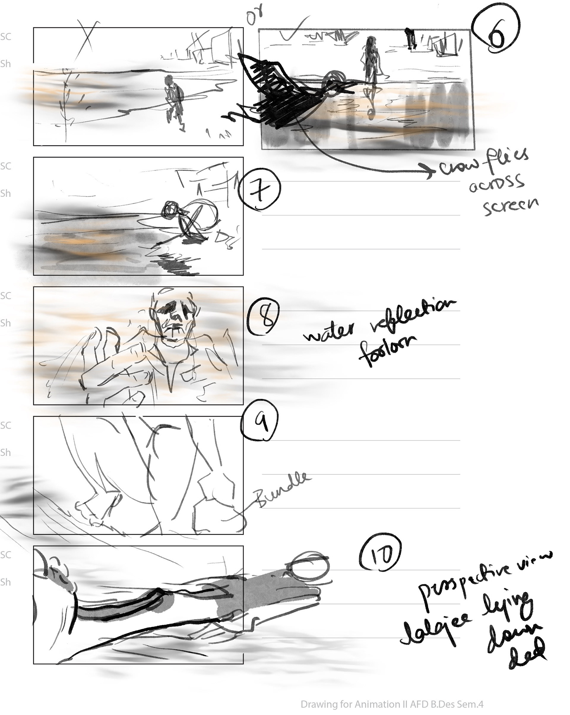 Group project done with my friend Sandhra. We had to make a conversation with 2 people, write the script, storyboard, create sound design and make animatic for it.