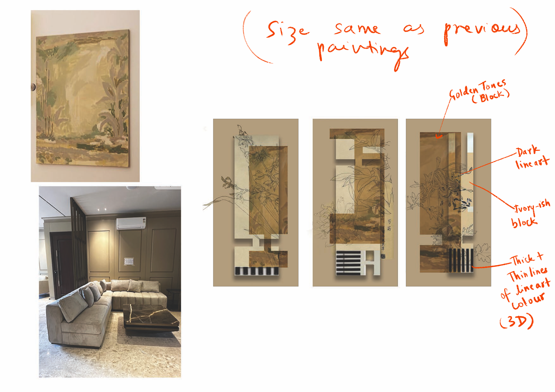 Designs by Samriddhi Uniyal for Bedbacks, Corridors, Bathroom Artworks, Room Artworks
